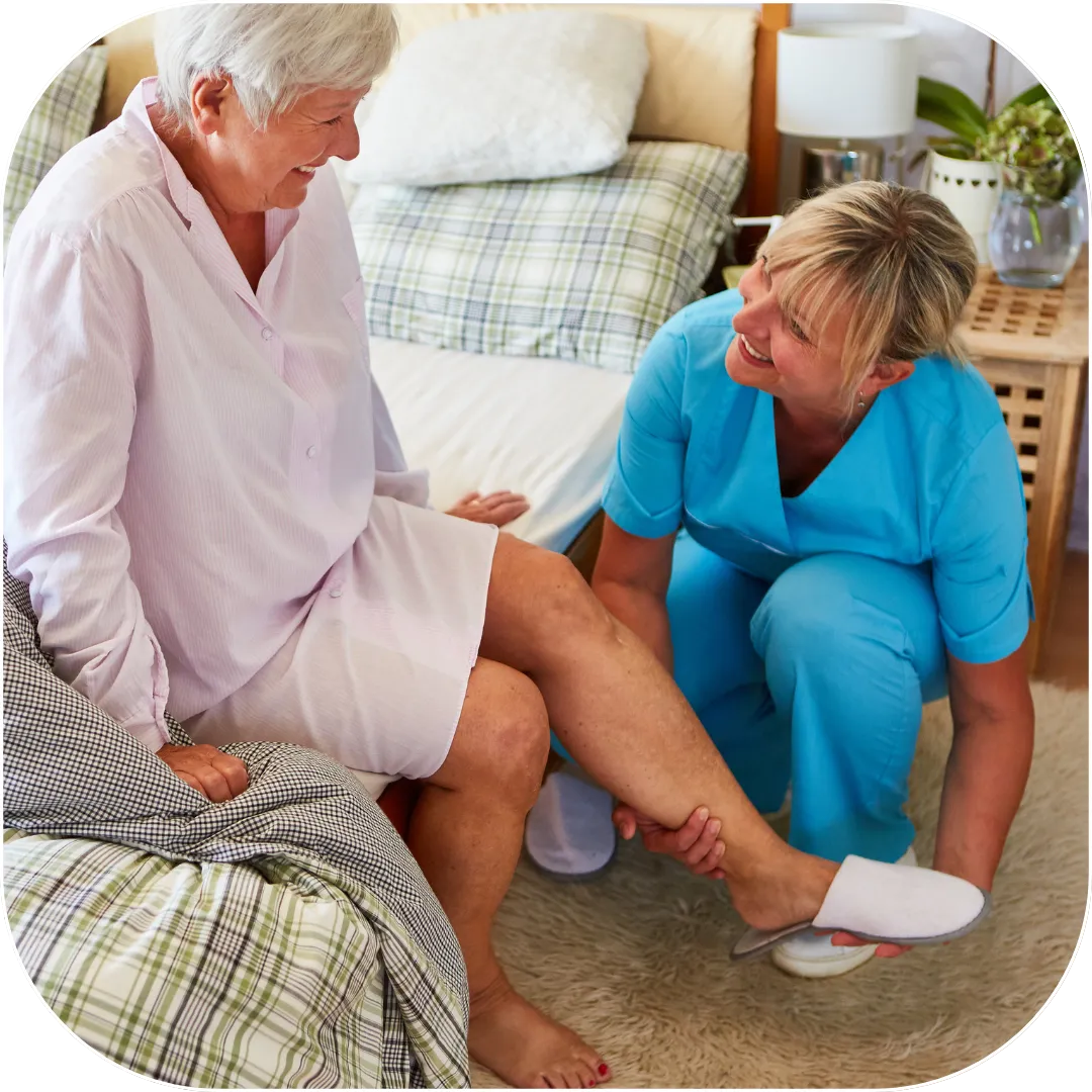 🚶 Mobility & Transfer Support – Safe assistance with walking, moving between positions, using mobility aids, and preventing falls throughout the home.